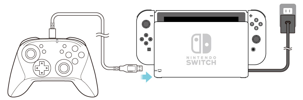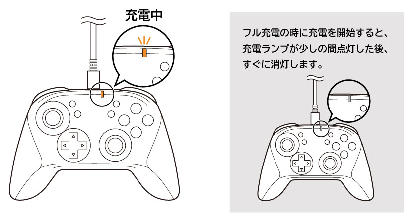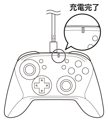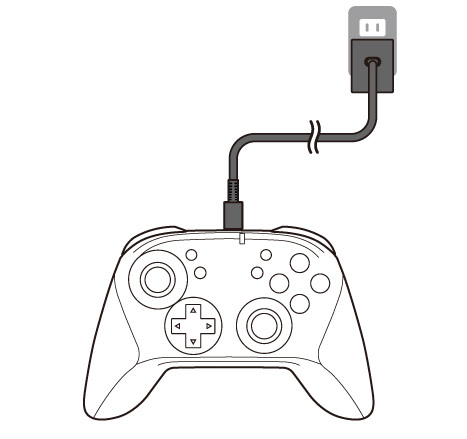※ イラストは「ワイヤレスホリパッド for Nintendo Switch」のものです。詳しい充電方法については、