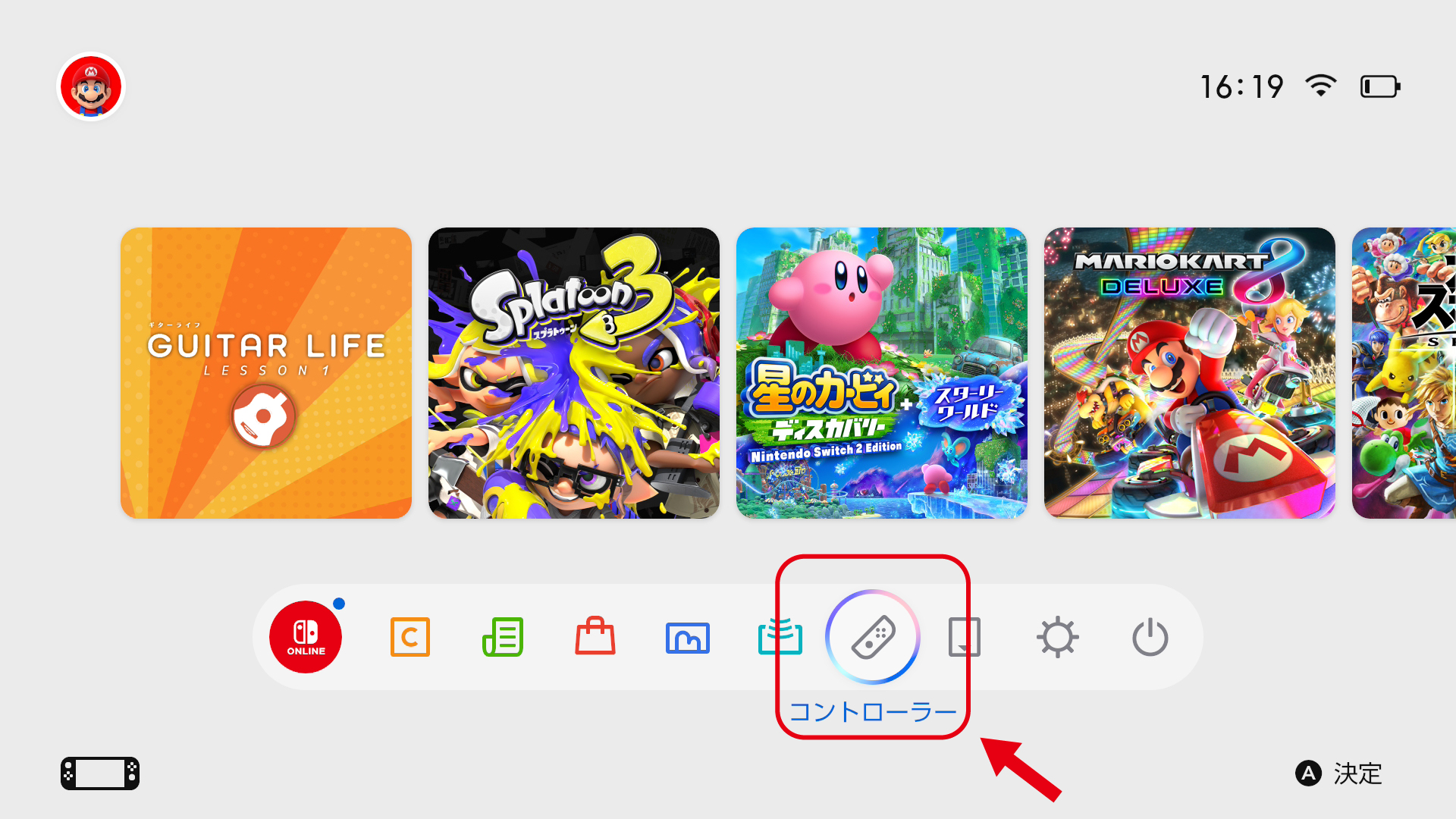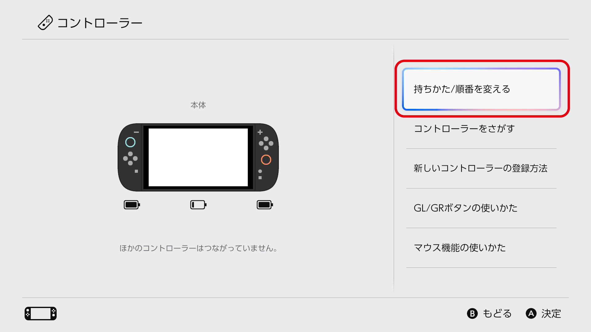 1. Nintendo Switch 2 本体のHOMEメニューから「コントローラー」→「持ちかた/順番を変える」の順に選択してください。