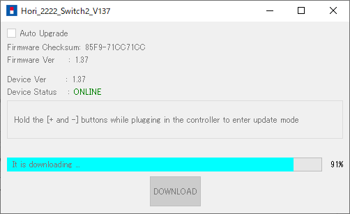 4. ファームウェアのダウンロードが開始されるので、しばらく待ちます。